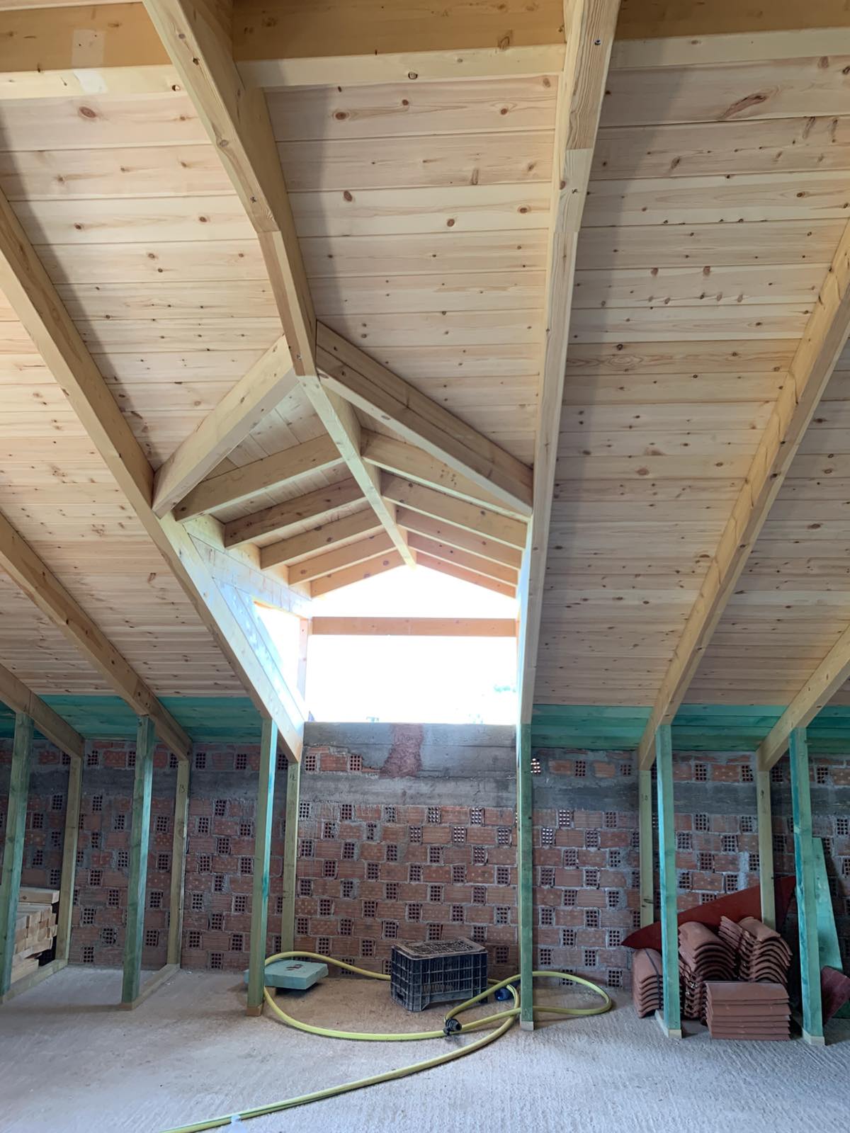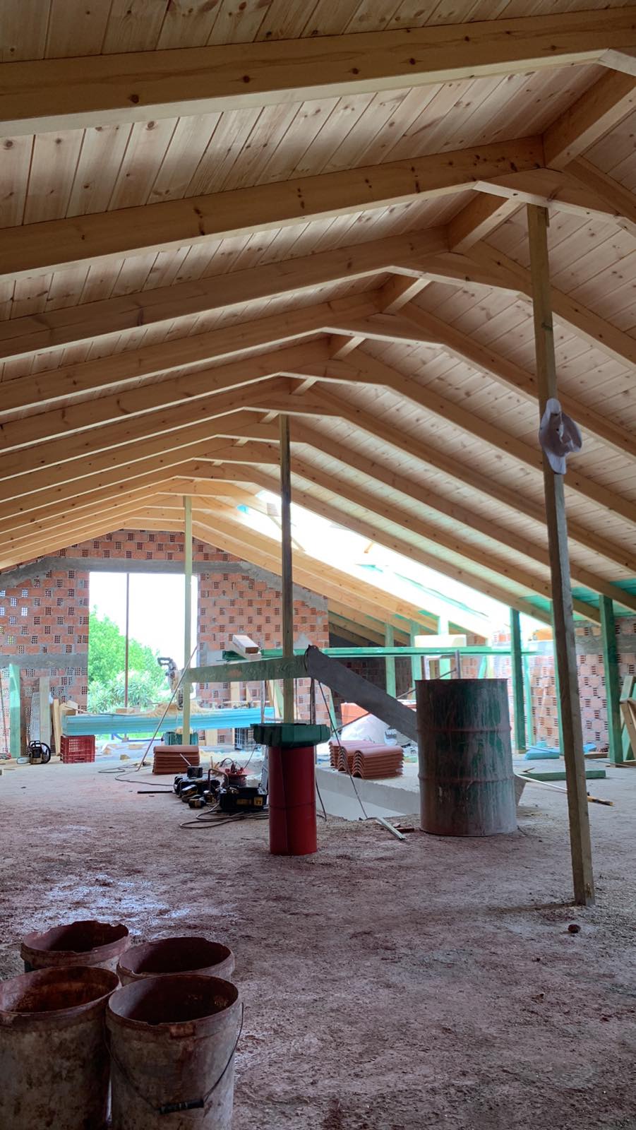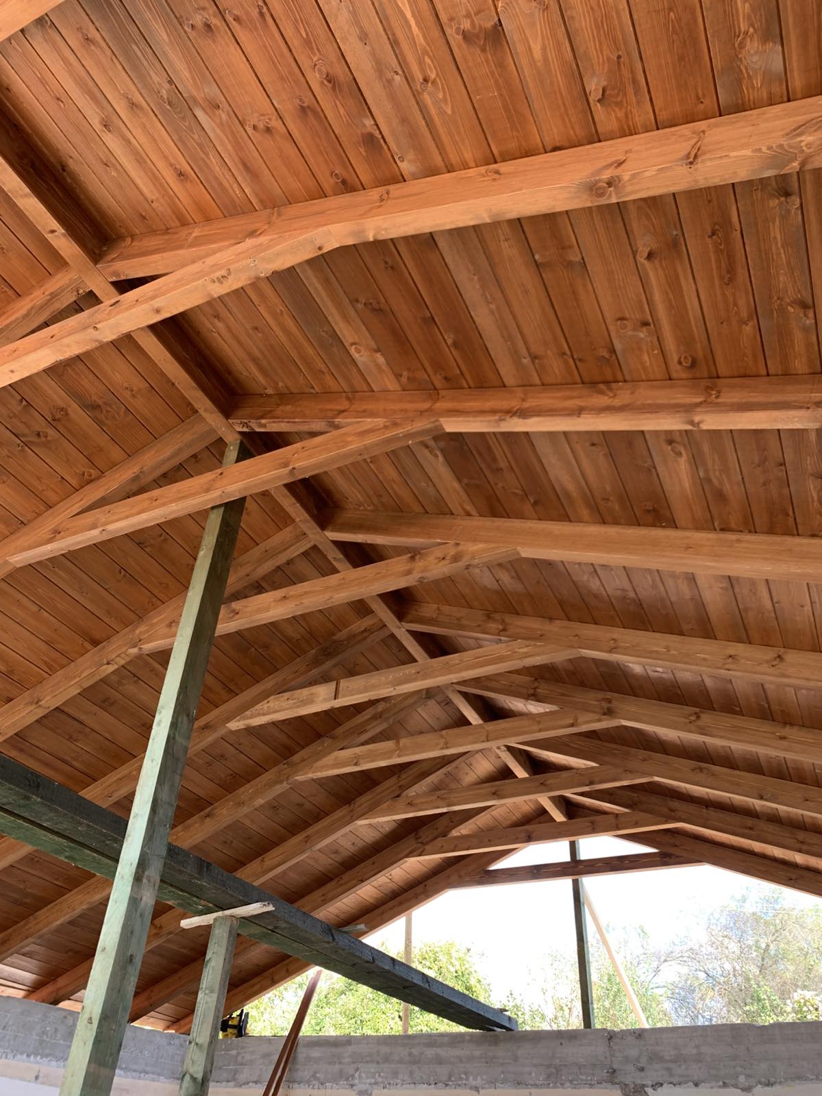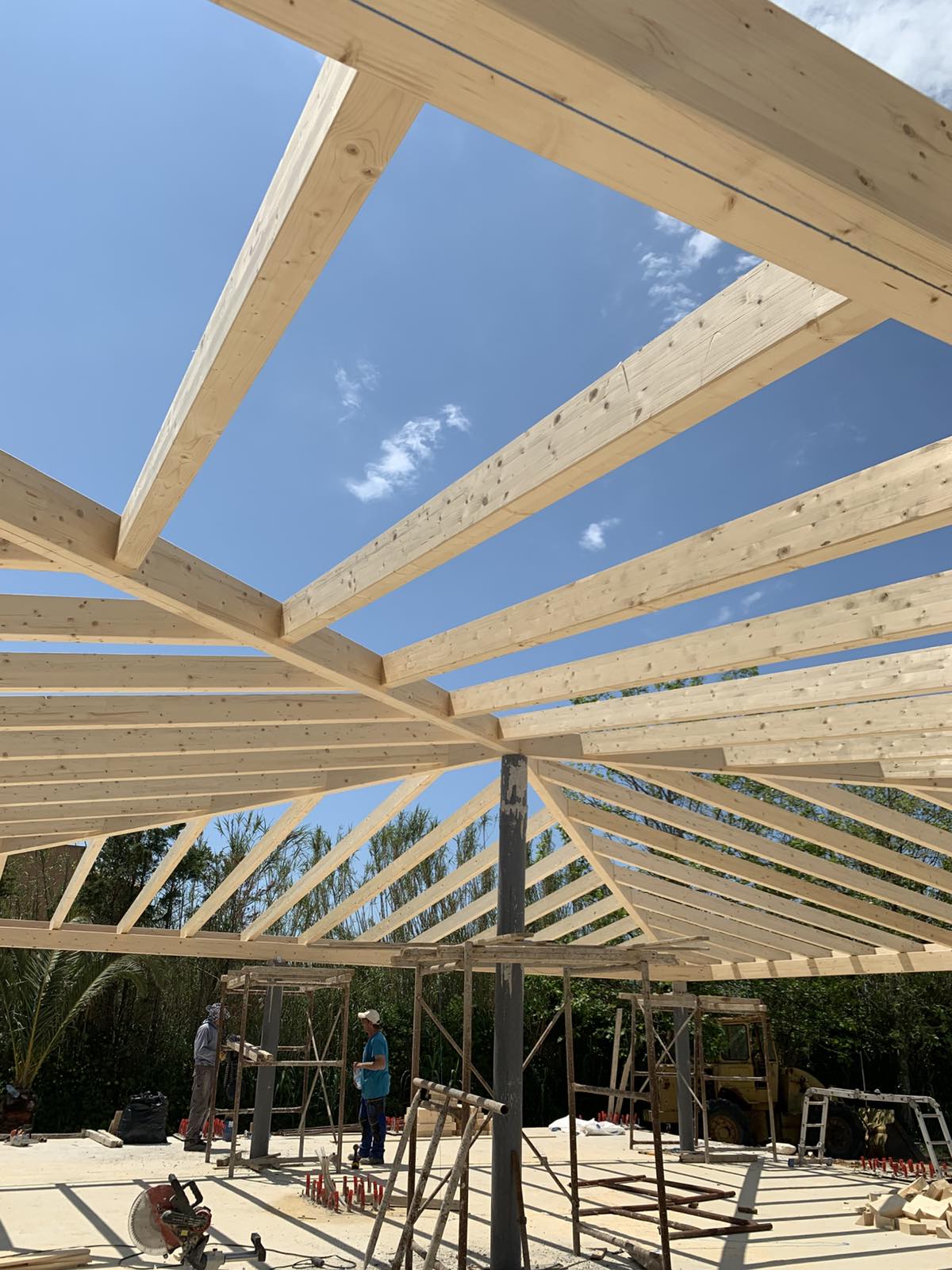 Στη «Στέγες Χρύσης», με τον σύγχρονο εξοπλισμό μας, εξασφαλίζουμε άψογη ποιότητα κατασκευής. Χρησιμοποιούμε δίσκους μεγάλου διαμετρήματος για καθαρές και ακριβείς κοπές, ενώ οι συνδέσεις πραγματοποιούνται με ειδικές ξυλόβιδες για μέγιστη αντοχή και σταθερότητα.